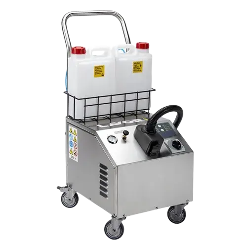 - Dispositivo para utilizar los productos químicos y detergentes mezclados con vapor de agua.